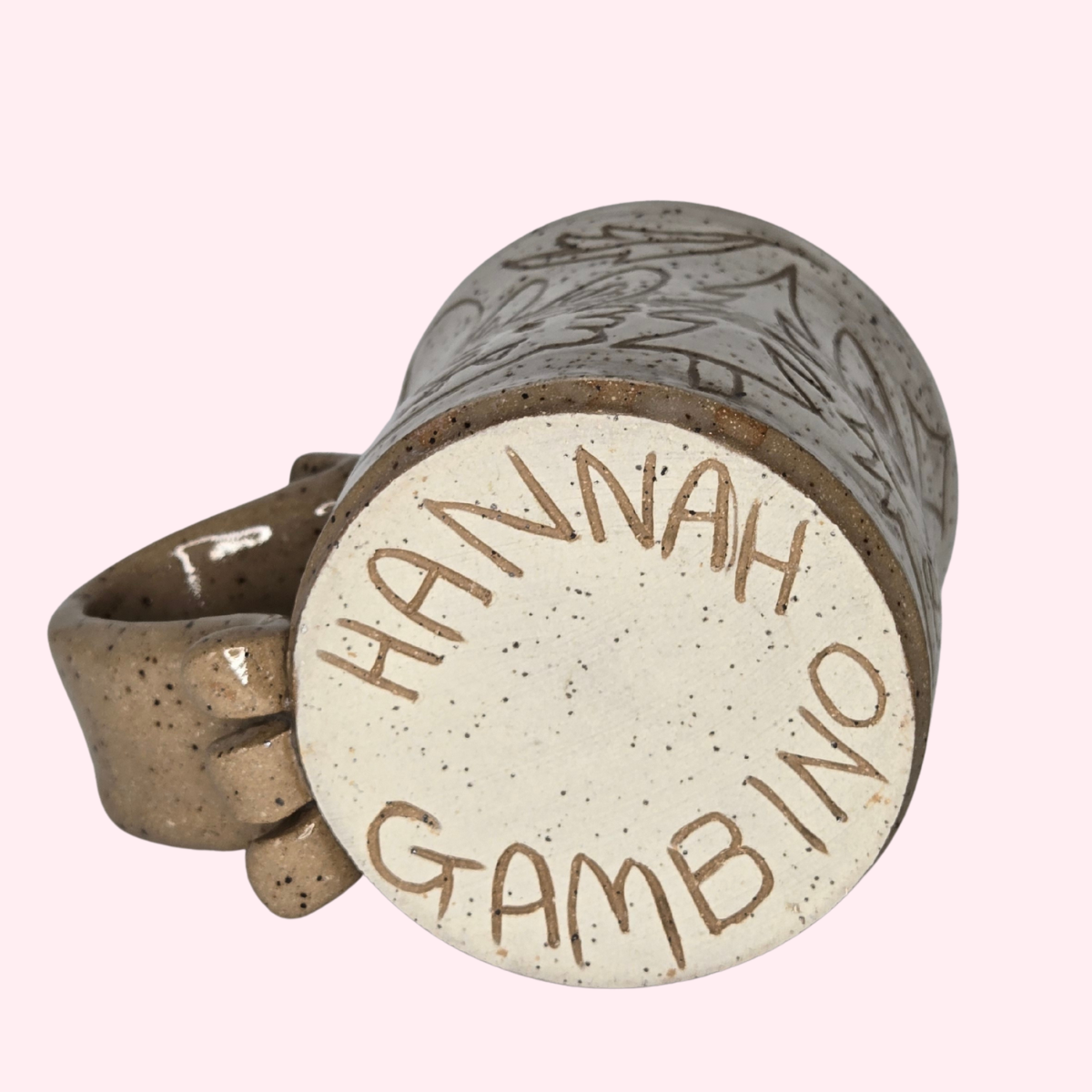 Slip decorated and carved outside with clear glaze finish & deep blue glaze inside