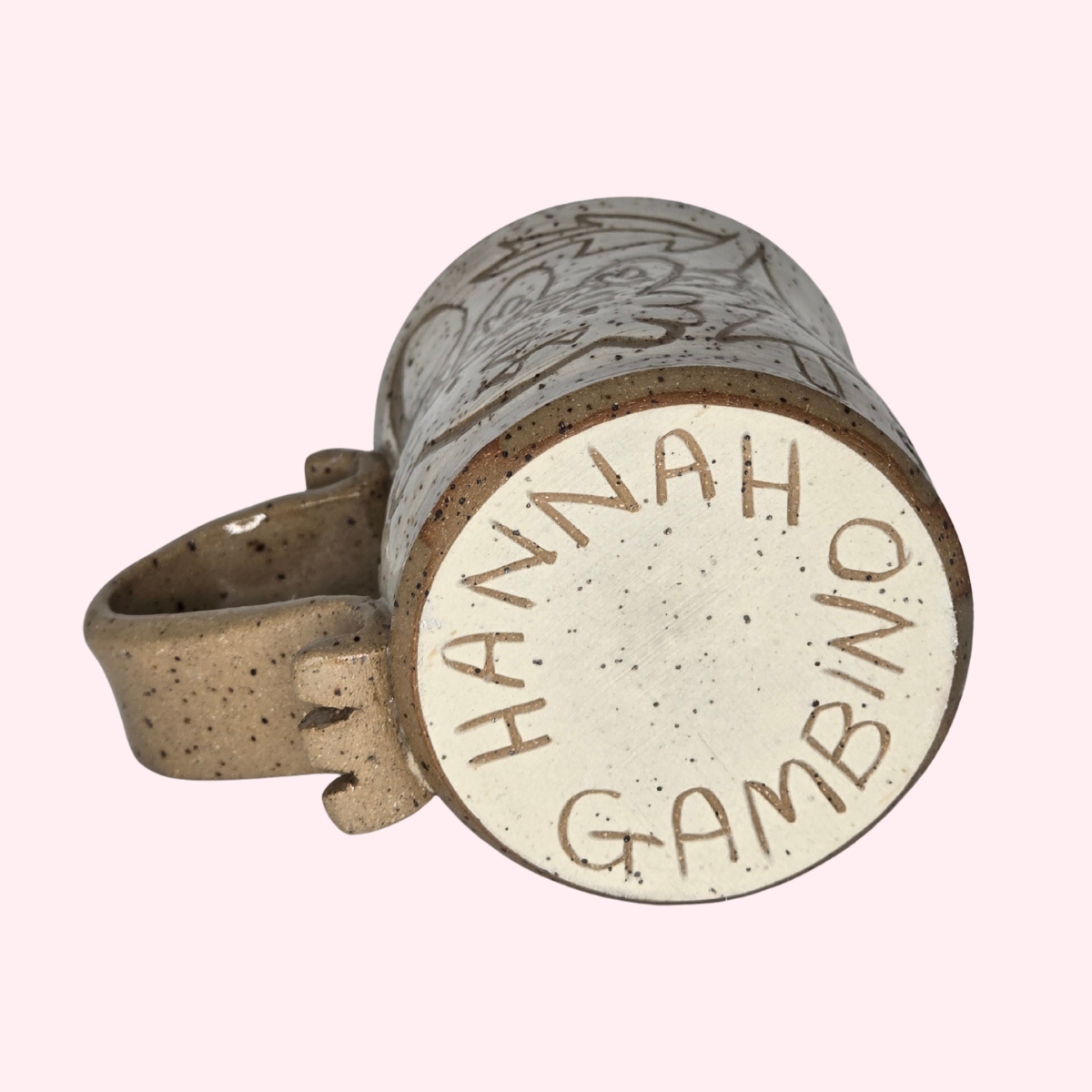 Slip decorated and carved outside with clear glaze finish & frost blue glaze inside